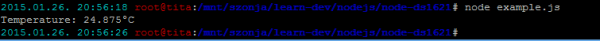 A Node.js modul a Raspberry Pi-re kötött DS1621-el kommunikál. A modul inicializáláskor folyamatos hőmérésre állítja a DS1621-et. Jelenleg a hőmérséklet lekérdezést támogatja a modul. Ehhez két függvény áll rendelkezésre: